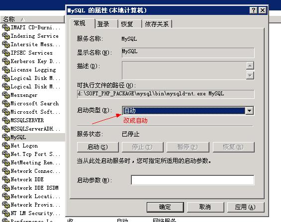VPS独立主机用建站助手不能建立MYSQL数据库问题。1.首先检查MYSQL是否正常启动,默认我公司MYSQL是没有启动。远程登录服务器,点开始》运行》输入services.msc点确定,找到MYSQL服务右键属性》启动类型改成自动然后启动起来,以后系统重新启动MYSQL服务就会自动启动。
