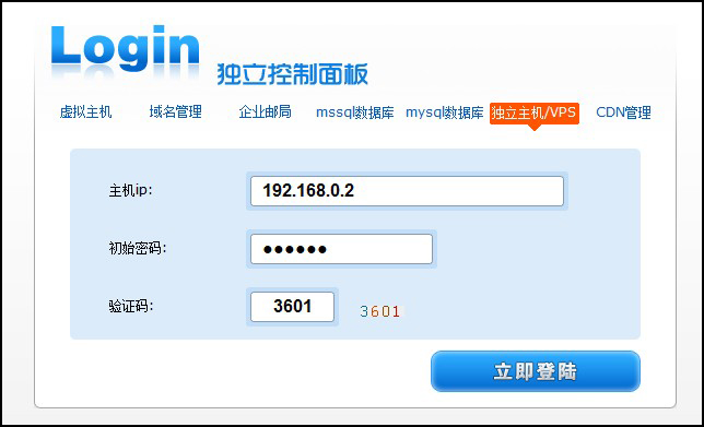 独立控制面板(http://www.myhostadmin.net)登陆,如图: