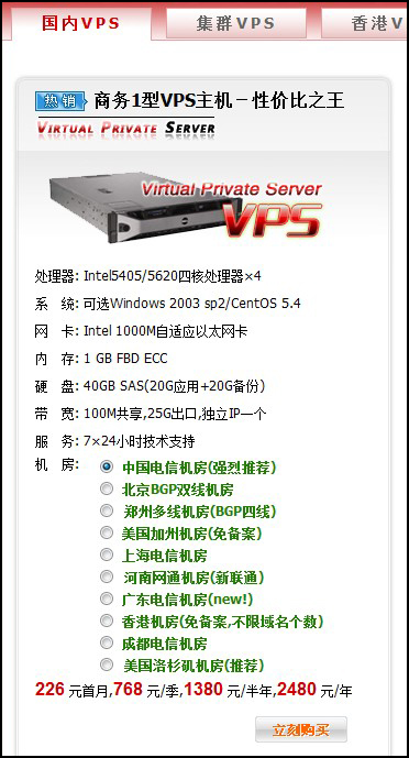 代理平台如何开通VPS客户在代理平台开通VPS流程: 首先,客户登陆代理平台,在代理平台上点击“VPS主机”,选择需要的类型和机房,点击“立即购买”。如图: