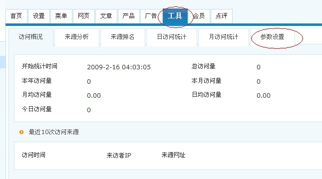 第一步,进入网站管理后台,选择工具,然后点参数设置